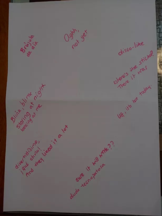 It was fitting to round off with a songwriting workshop inspired by ‘listening to the whispers of everyday objects’, hosted from Sweden by guest Lucy Cathcart-Frödén, which gave us the opportunity to compose multilingual lyrics she then put to music – this assemblage, which sparked a heated discussion around the syntactic and gender implications of translating the involuntary neologism bianconere (created thanks to sloppy handwriting of biancaneve “Snowhite”) as a masculine/feminine plural transcreation, can be heard here.