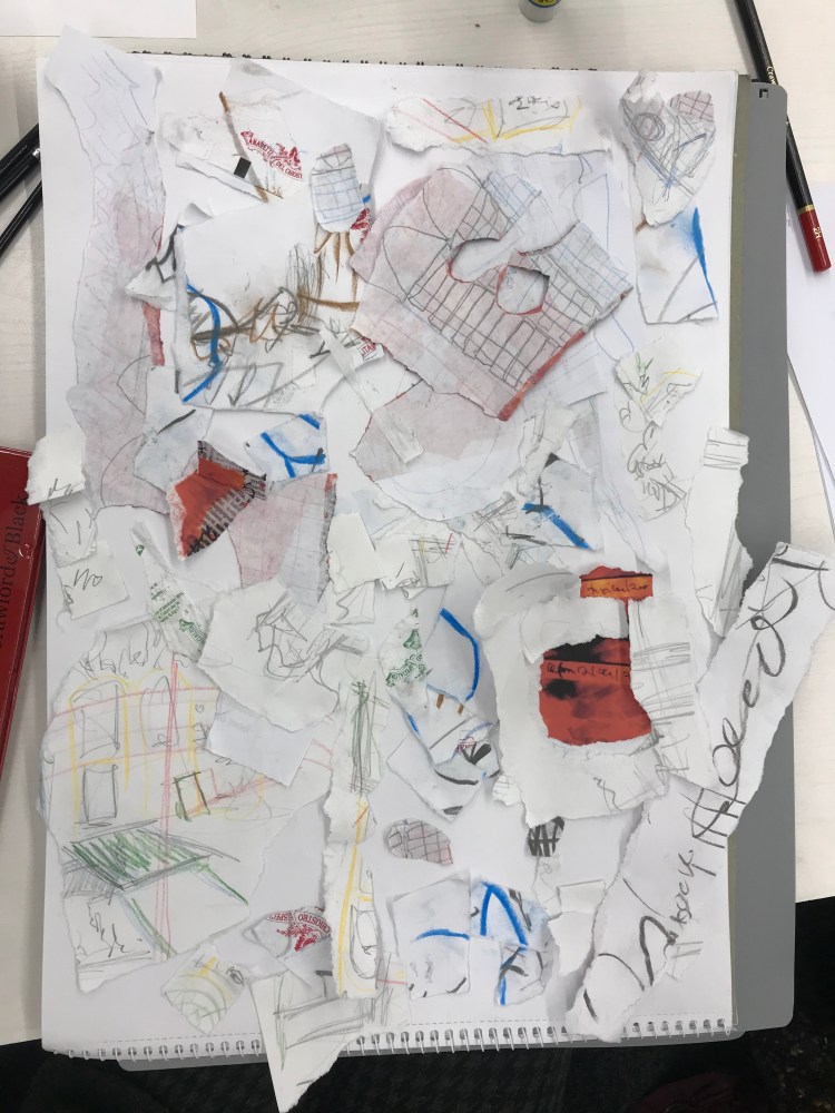 The first session of the workshop had produced fascinating collaborative asemic texts which combined the voices of several participants resulting in layered, drawn dialogue. We felt that there was more to be mined from working in groups and hence collaboration would also play a big role in the second session.