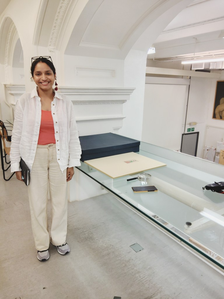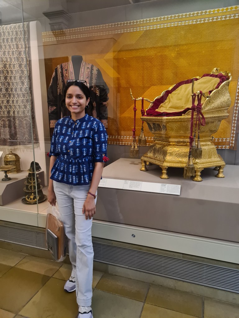 At the Victoria & Albert Museum, London after finishing my archival work where I examined clothing samples from undivided Punjab from the 1800s.