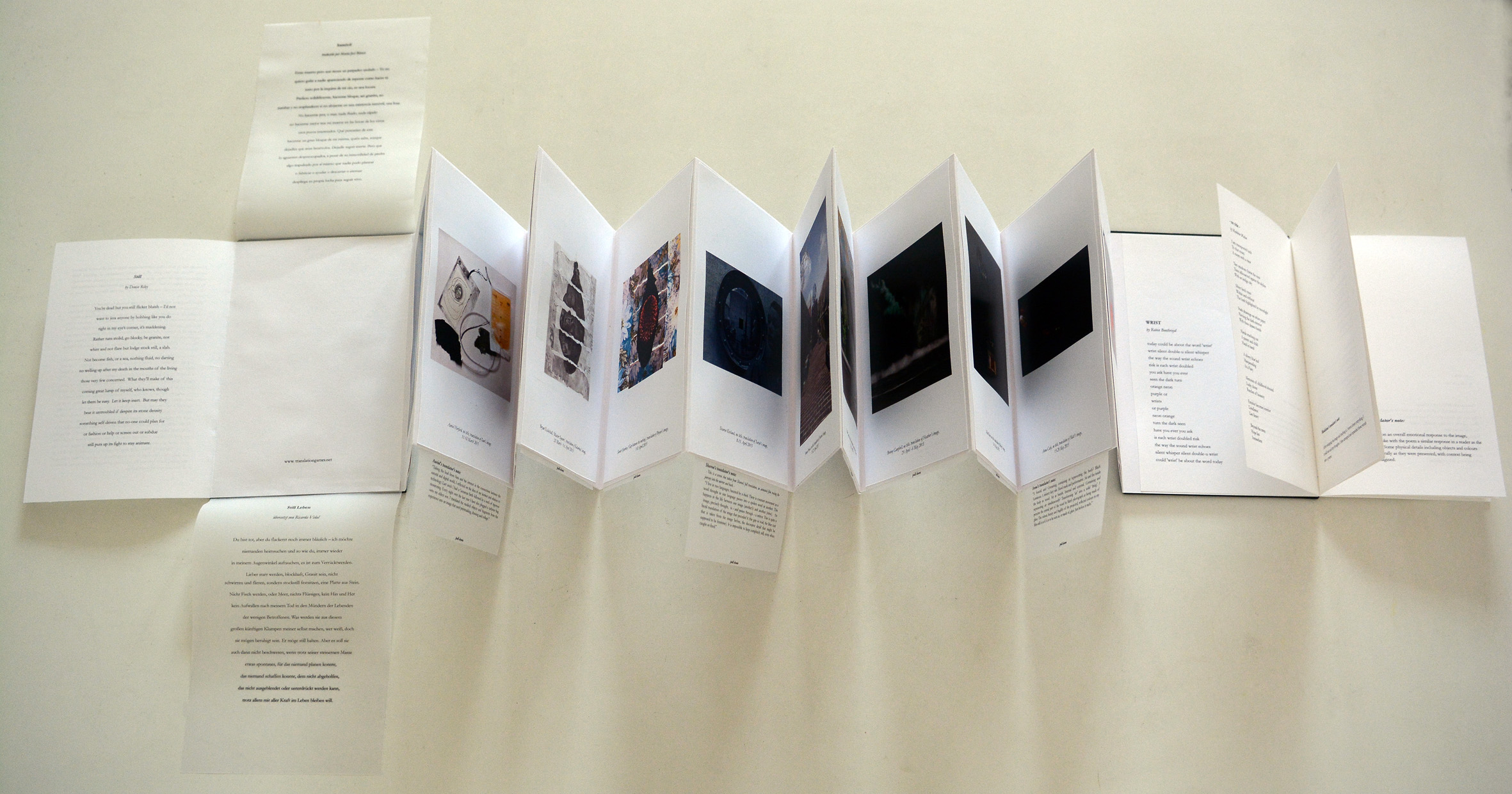 Translation Games brought literary translators, artists, designers and academics together to explore translation in a ludic programme of workshops, symposia, public exhibitions, performances and publications. Exploring the various layers, levels and facets of communication (visual, tactile, acoustic, vocal, gestural, olfactory, and so on) we translated between languages and across various art forms.